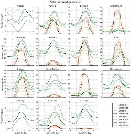 Figure 2: Complementary daily generation profiles of solar and wind energy.